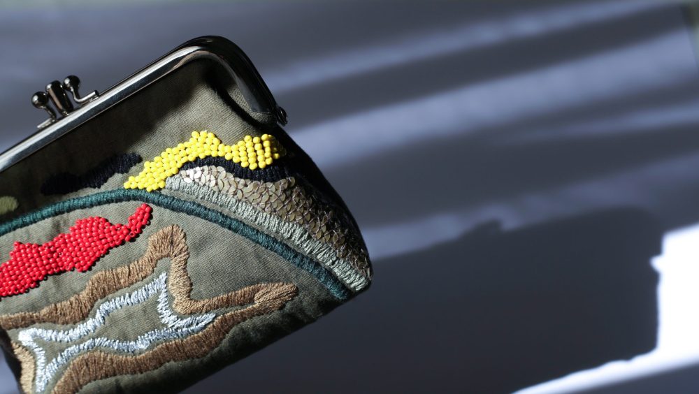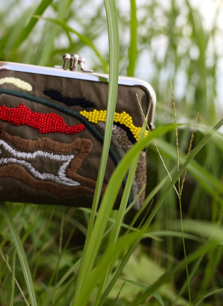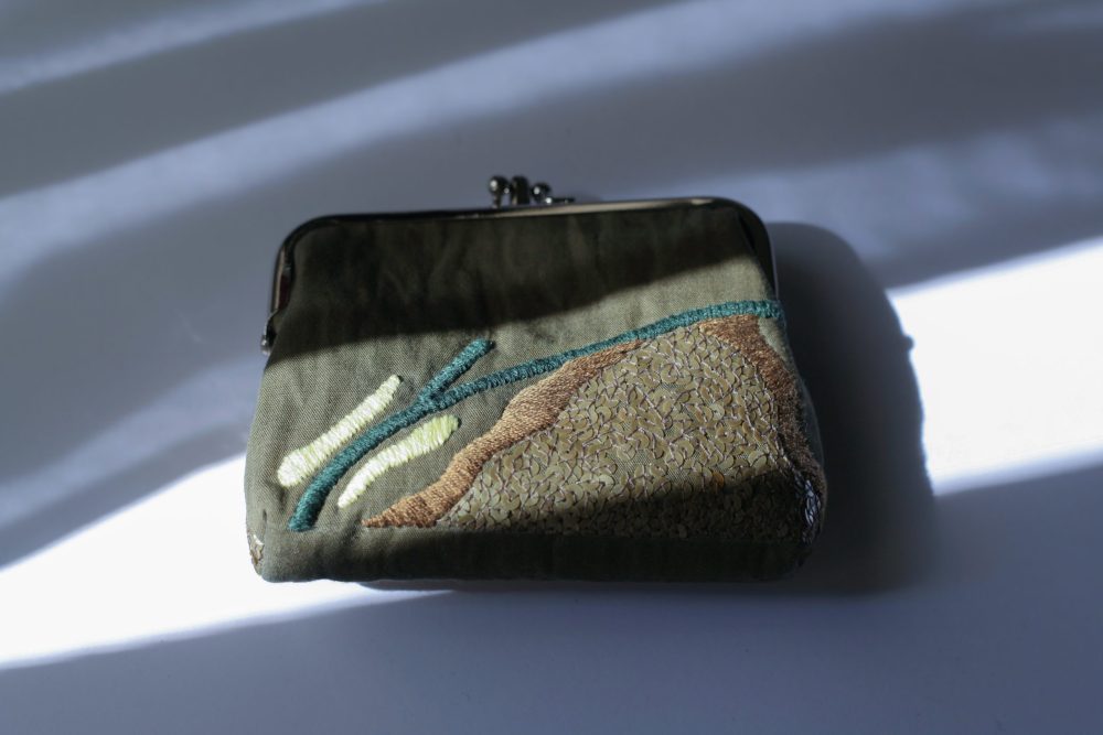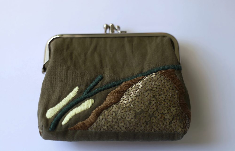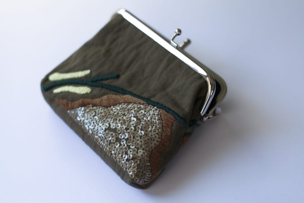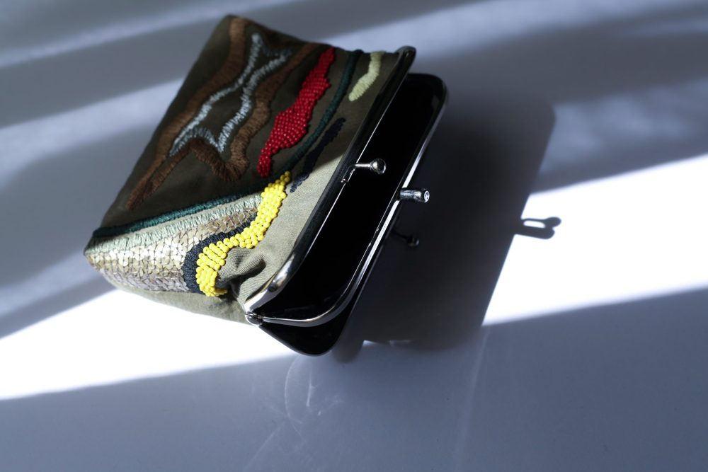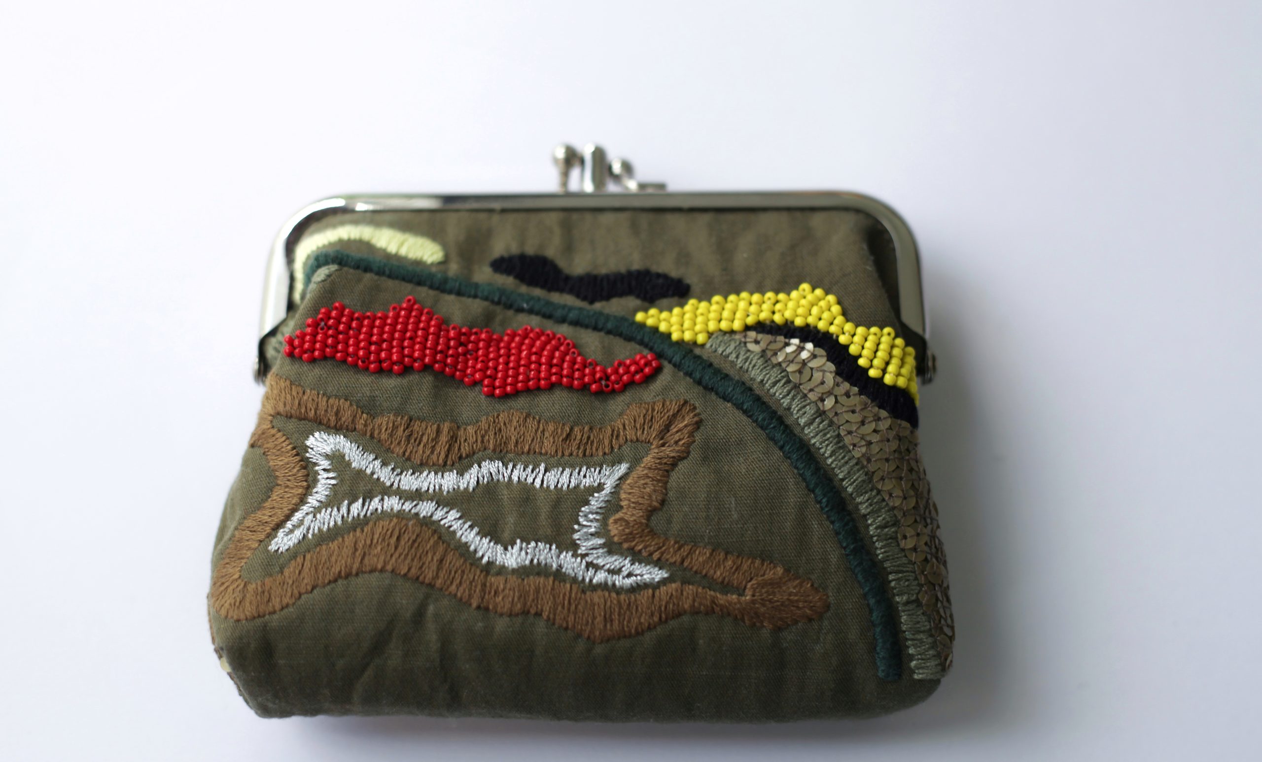 橄欖綠手工刺繡口金包