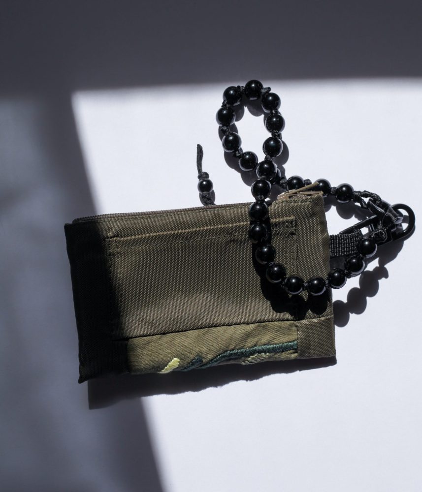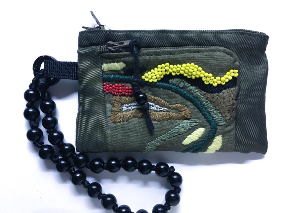 橄欖綠手工刺繡拉鍊零錢包