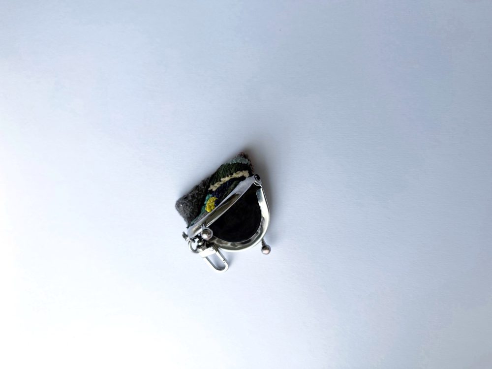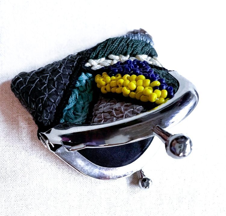 黑彩珠迷你手工刺繡零錢鑰匙口金包