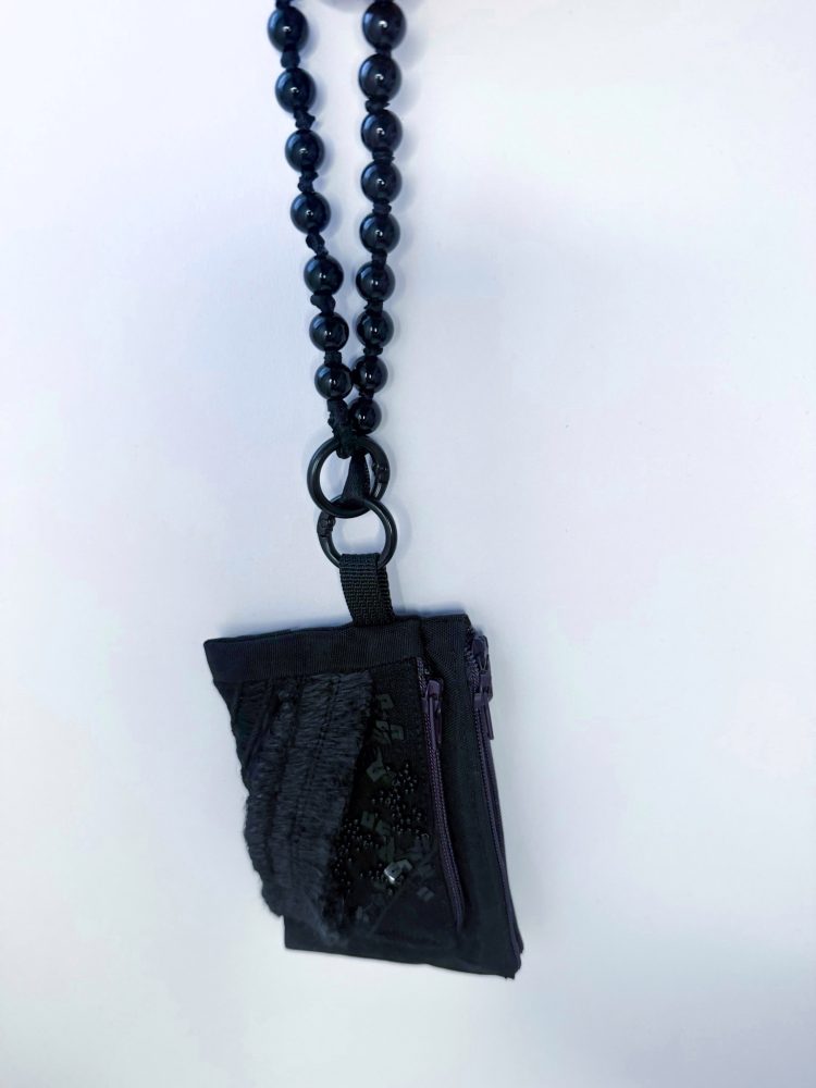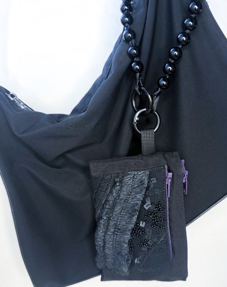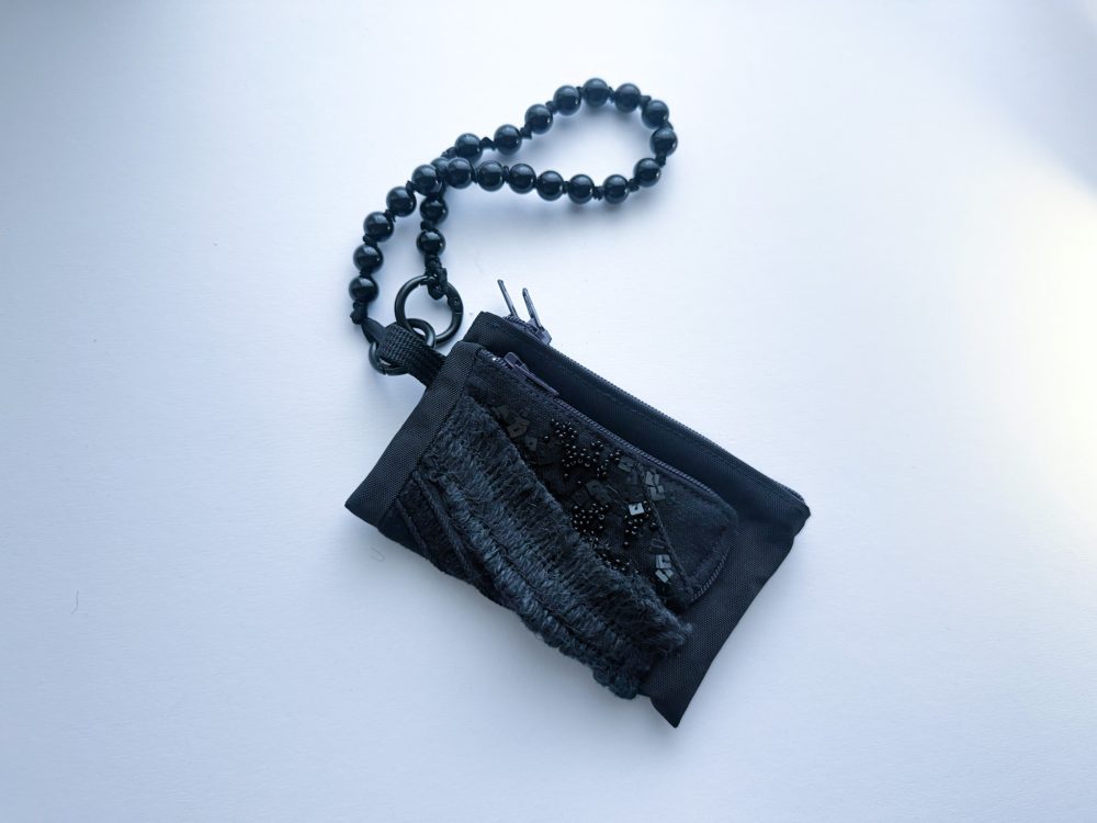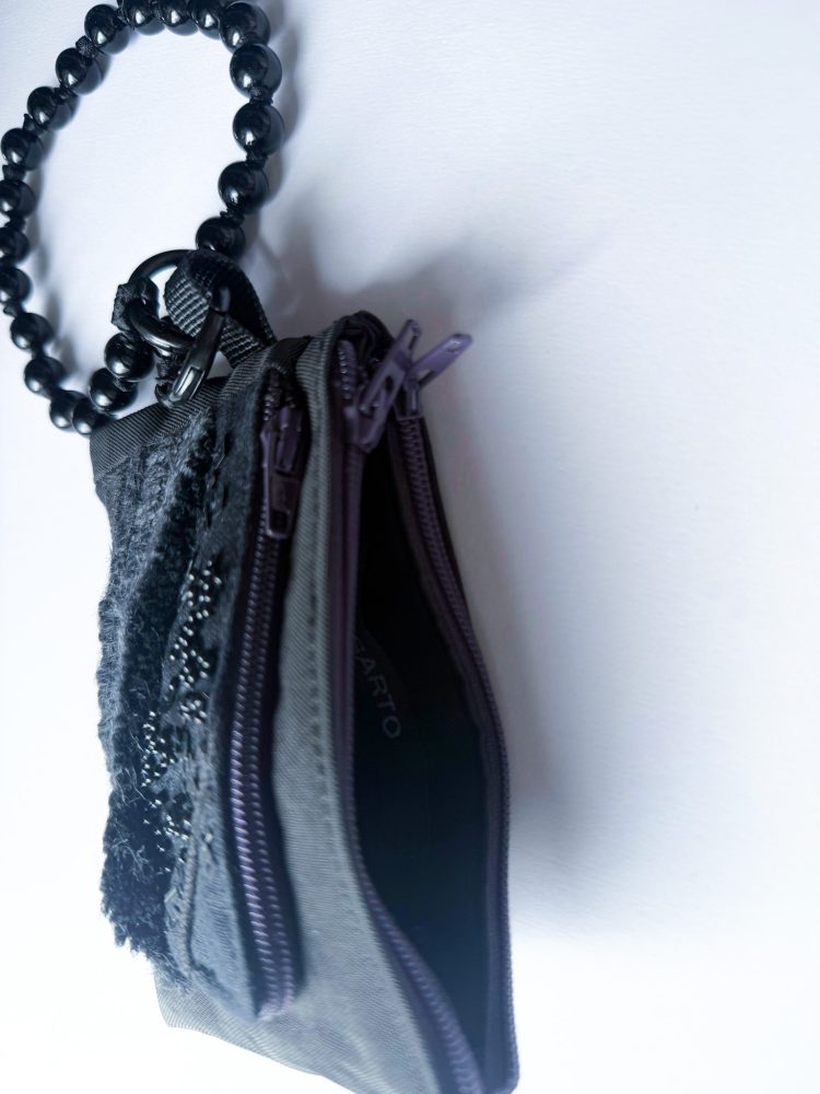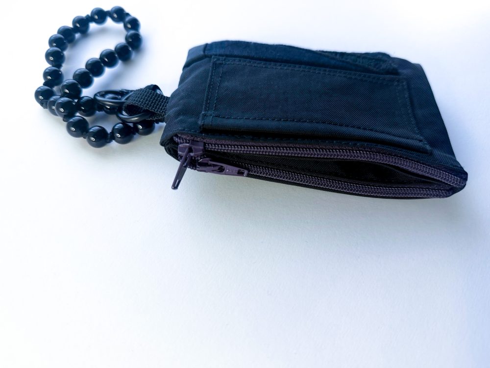 黑色手工刺繡拉鍊零錢包